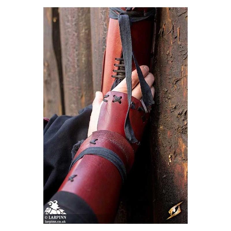 Epic Armoury’s Samurai Bracers are a set of leather vambraces designed to protect the forearms and hands in combat. Made from full-grain leather, these bracers have been sculpted to comfortably follow the shape of the arms. The leather has been hardened and the edges curved to add structural strength that will ensure added protection and longevity.