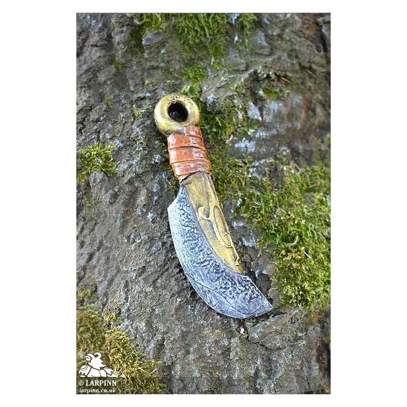 Epic Armoury's new Skinner Knife is a 9 cm blade and sculpted 3.5 cm handle perfect for rangers and creative soldiers alike. Featuring more detailing than previous throwing knives, the Skinner Knife appears more realistic thanks to the skilled hand painting, iron blade textures, intricate brass hilt, and sculpted leather cord. Easily hang your knife from your belt using the loop on its pommel, showing off your weapon while keeping it secure. With its low-fantasy style, match this throwing knife with most Epic Armoury products and characters. Use it as a weapon or hunter’s tool--whatever fits your needs!