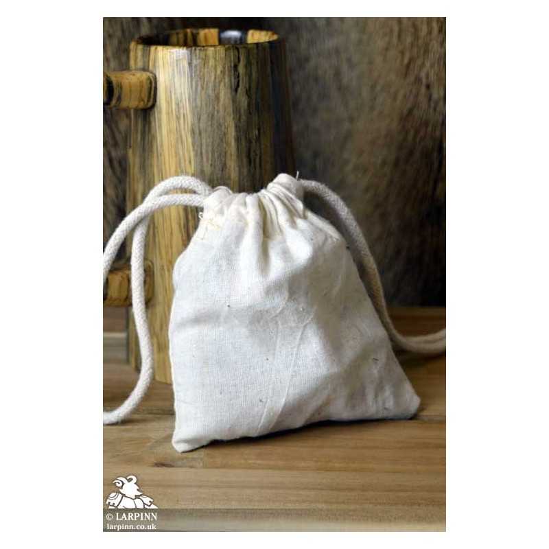 There are so many things one should have on hand at LARP events. Small fabric bags in different colours are great for organising the contents of your larger bag, can be fastened to your belt with ease or tucked away in hidden pockets, boots and bras. Made from light cotton fabric and closed with the two tie-strings, this small bag is an essential for all your LARP, theater and cosplay events.