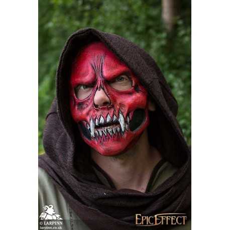 The mask is set in a permanent glare with impressive sculpted and hand painted details, textured to look like bone painted a blood red colour. Secure the mask to your face using the adjustable elastic. Customize the mask’s appearance with Epic Effects Water-Based Makeup.