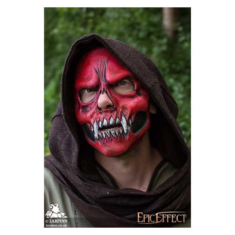 Epic Armoury’s Red Skull Trophy Mask is a latex face mask designed to look like a terrifying, bloody skull. Made from 100% natural latex, this mask covers the whole face--including over the chin--with roomy holes around the eyes and nose for comfort. The mouth, featuring intimidating fangs and protruding teeth, moves with your jaw to allow for visible and understandable speech.