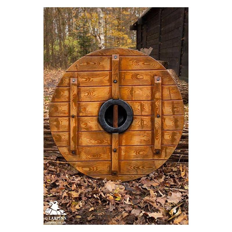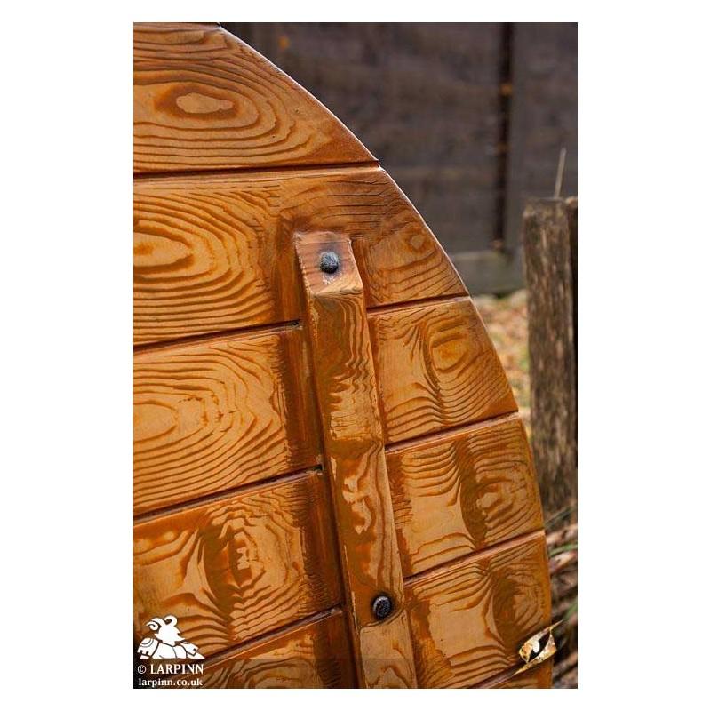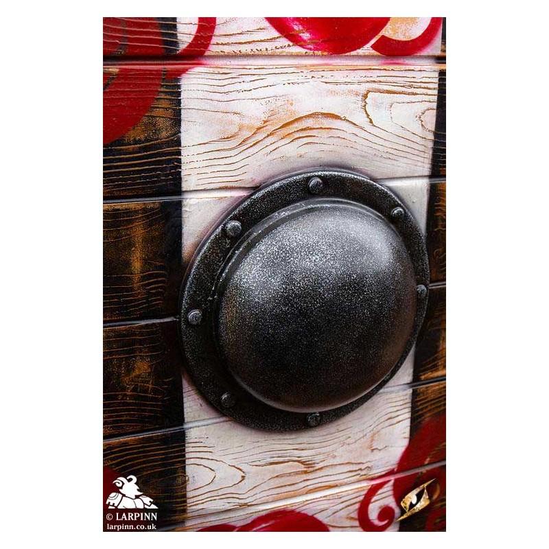 Epic Armoury’s Sleipnir Iarla Shield is a 80 cm round latex shield that will be your companion to Hel and back. You fear no heroic and dangerous quest with your Iarla Shield at your side! Inspired by early Vikings and Saxons, this Live Action Role Play (LARP) safe shield is carved from EVA foam to look like true wood. Coated in a layer of durable latex, it features a wood grain texture on both the front and back--something that makes this shield truly unique and perfect for a truly immersive look. You can even find small sculpted nails hammered into the braces, because attention to detail is so important.