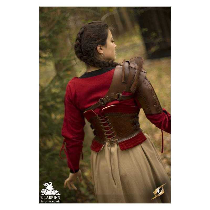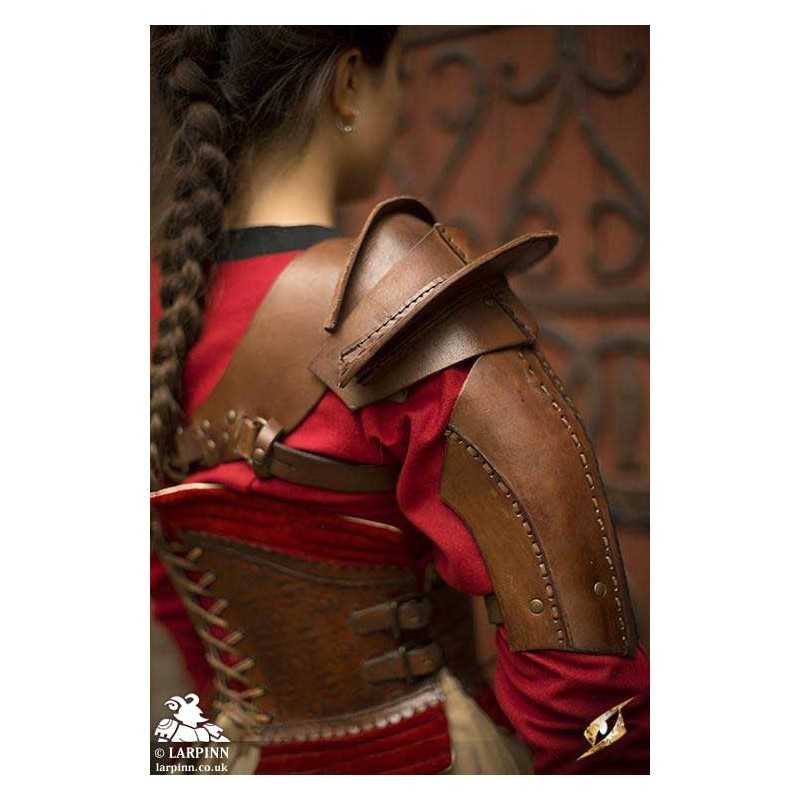Secure the Shoulder Armour using the sturdy leather straps around the upper arm and the chest. You can wear it on either shoulder or as a pair together. The style is neutral, allowing you to easily match it with other Epic Armoury leather and metal armours when customizing your character’s equipment.