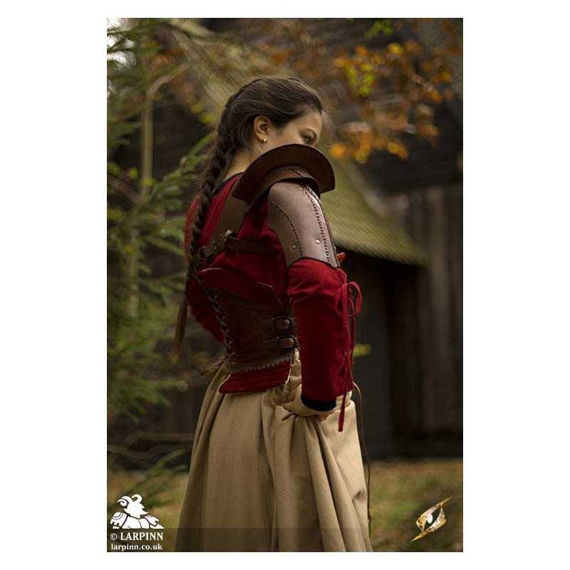 Epic Armoury’s Shoulder Armour is a handsomely crafted piece of armour with shoulder and upper arm protection. Made from vegetable-tanned full-grain leather, this armour features a pauldron and a sword-breaker designed to deflect blows away from the head. Using overlapping and form-fitting plates to add extra strength to the leather, you can expect to use this shoulder guard for a long time with regular leather care. The upper arm guard is embellished with flattened leather cords and toned rivets.