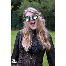 Our Crystal Vision Steampunk Goggles are an extremely fun upgrade to the standard post apolcalyptic inspired goggles frequently used throughout steampunk LARP and gatherings. The lenses used in these goggles are thick and similar to that of a kaleidoscope, so best worn whilst listening to 'Lucy in the Sky with Diamonds', The Beatles.