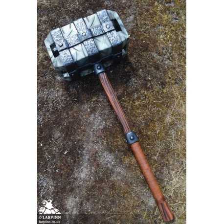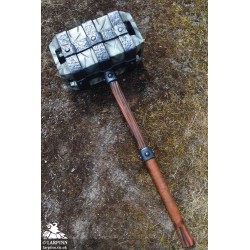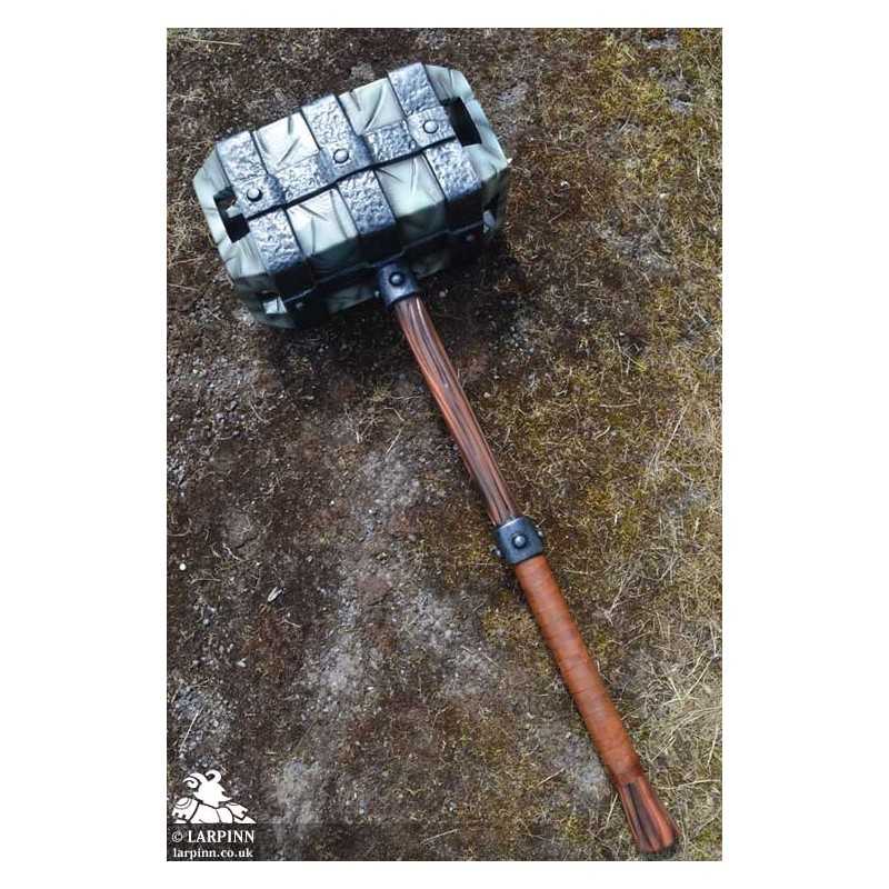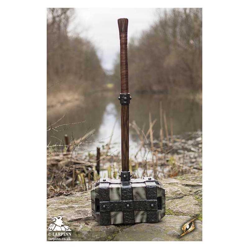 Epic Armoury’s Stone Hammer is a 105 cm latex warhammer uniquely designed to be safer and easier to wield in combat. The Stone Hammer’s head is symmetrical, reaching 20 cm from the haft with two 20 x 20 cm faces designed to deliver a fatal blow to your enemies. The head is hollow, making it safer to use and more lightweight than a foam alternative. Sculpted and handpainted to look like a heavy stone encased in metal, the head is attached to a dark wood-coloured haft and a 30 cm leather wrapped grip.