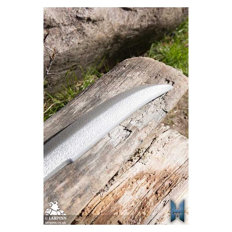 This weapon has a polyurethane crossguard and pommel, meaning that it doesn't meet the safety standards required at some LARP systems. Please see below for more details.
