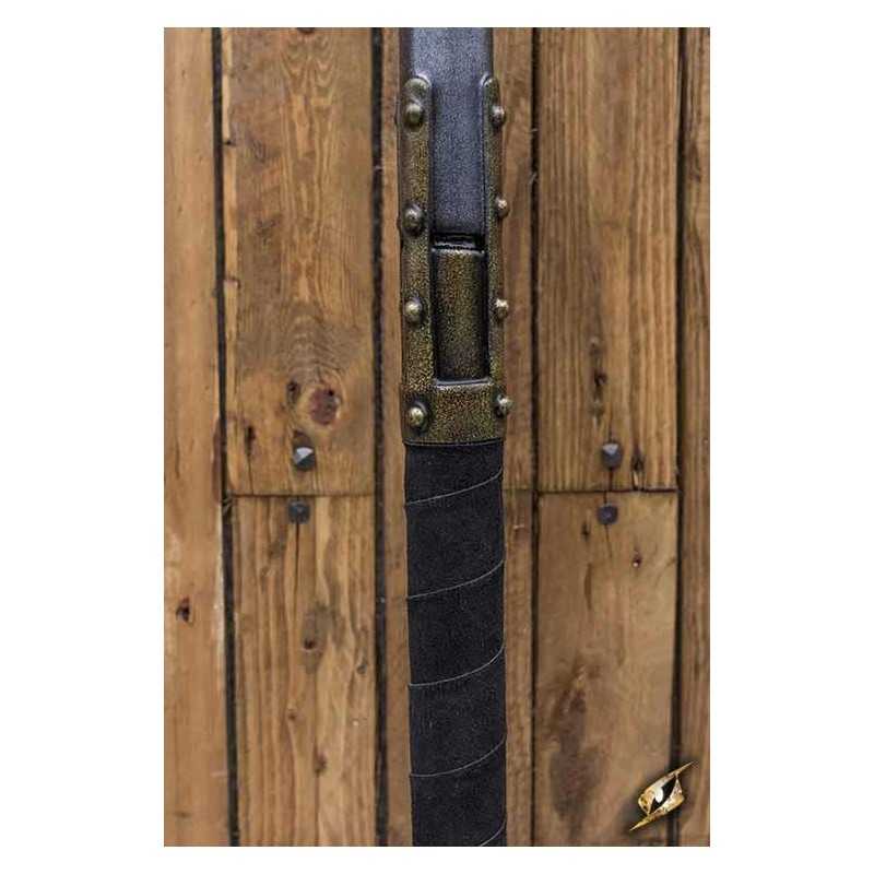 The haft is made from durable closed cell foam around a fibreglass core and finished with a strong latex coating. The head is made of strong, flexible latex with an interior foam rod to maintain its shape and keep the head attached to the haft. With regular latex maintenance, your LARP weapon will provide the safety and aesthetic appeal fitting an epic character for years to come.