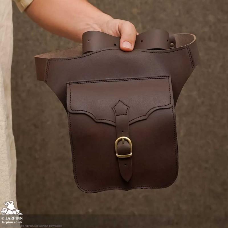 This Hip Satchel is affixed with a leather belt that winds around the waist and offers great support for the high-quality leather pouch that sits at your hip. The pouch is affixed at the waist and closed with a metal buckle. Inside there is a leather slip pouch that offers great separation for items like phones, papers and money.