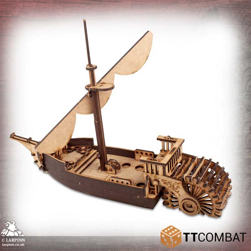 As well as being great scenery for a dock board, this kit comes with its own rules, making it a playable model for your doctors gang. It comes supplied with its own sail, but contains enough parts for you to rig your own if you're so inclined.