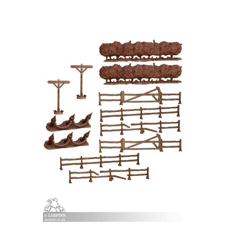Many fantasy battles are fought over abandoned farmsteads and hastily erected defences. This set includes fences, hedges, archers’ stakes, and signposts. These are perfect as obstacles for Kings of War or any other fantasy battle game.