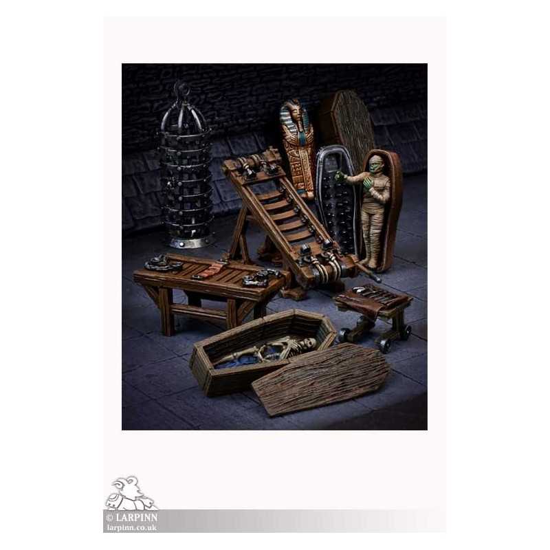 With this torture chamber, you will have ways of making them talk! It includes iron maidens, surgical tools, torture racks, coffins and hapless cadavers of past victims.