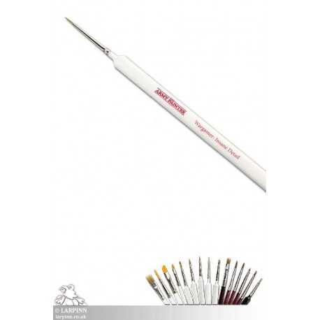 As the name suggests this is an extremely fine and small brush for the ultra small highlights, facial tatoos or just insane details like colouring the iris of an eye of a 28mm. miniature! Made from the purest Rothmarder sable hair, this is our most popular brush!