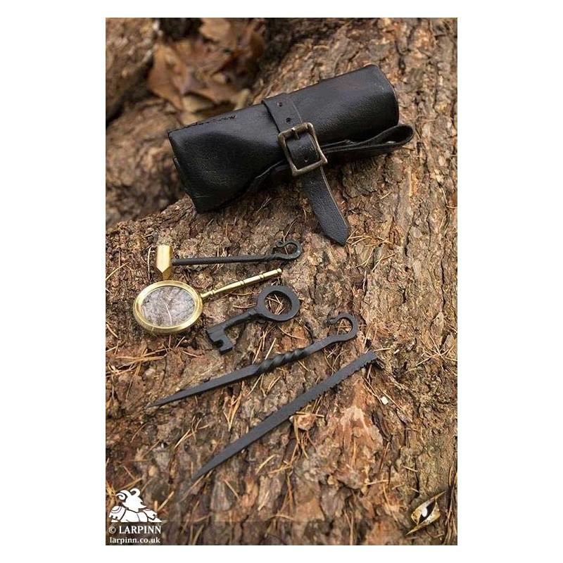 The Thieves Tools are a collection of steel and brass tools designed to pick locks or disable traps. The set includes a lock pick, mini saw, functional brass magnifying glass, universal key and a tiny hammer.
