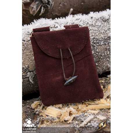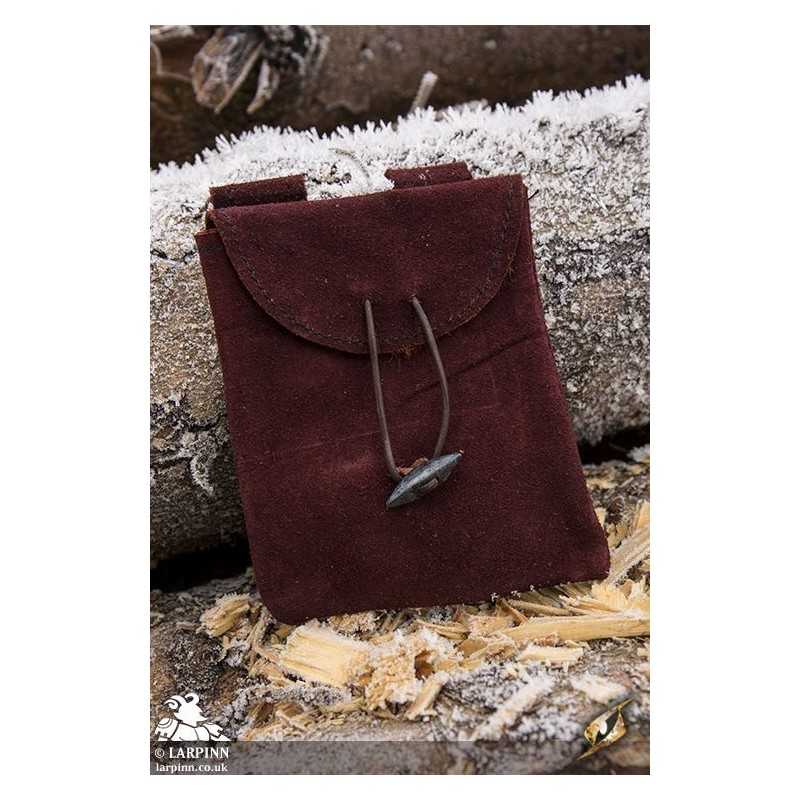 The bag is made from dyed split-leather and is stitched around the edges to ensure a product that will withstand the abuse of a LARP or reenactment. When adding the final touches to any multitude of characters, this Thin Leather Bag is a neutral solution that will last a long time.