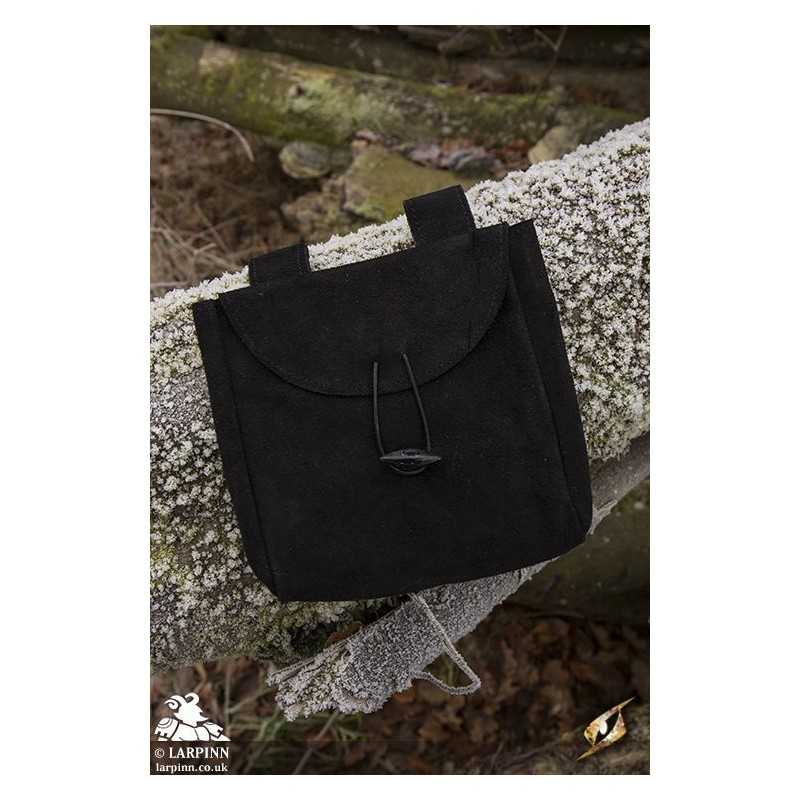 The bag is made from dyed split-leather and is stitched around the edges to ensure a product that will withstand the abuse of a LARP or reenactment. When adding the final touches to any multitude of characters, this Thin Leather Bag is a neutral solution that will last a long time.