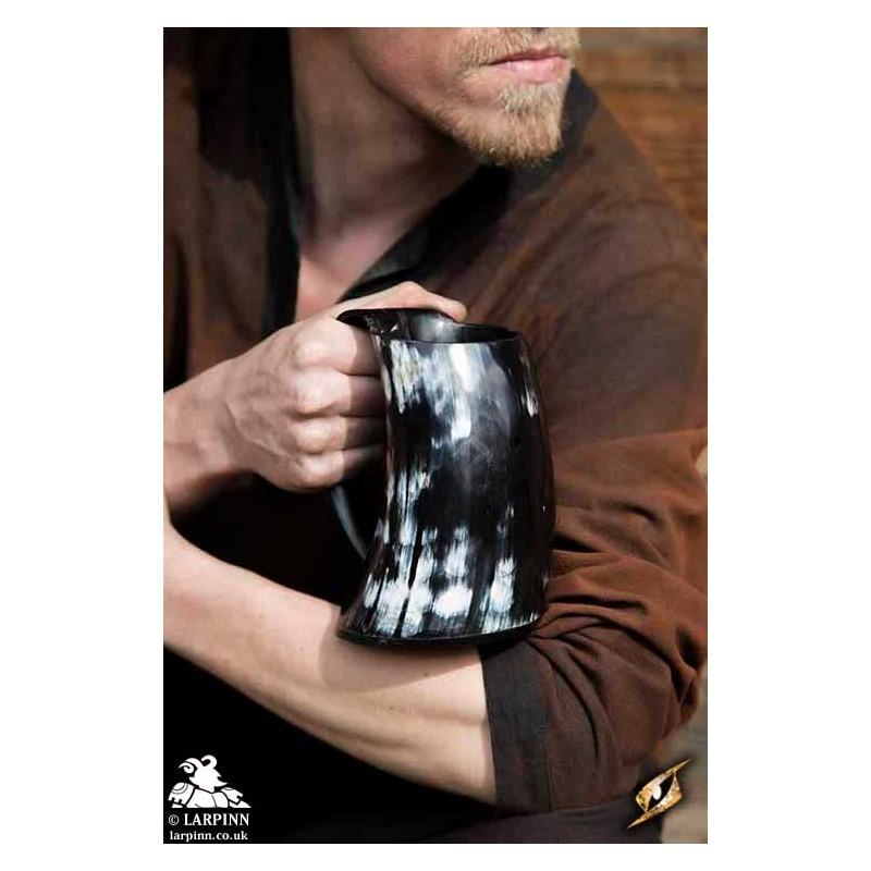 The Trader Mug is a drinking vessel designed to hold half a liter of your favourite drink. This mug is made of genuine horn and comes from the Indian water buffalo, chosen specifically for its dark colouring. The outside is polished to perfection and is smooth to the touch, while the inside of the mug is polished and treated for food consumption.