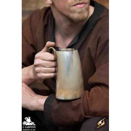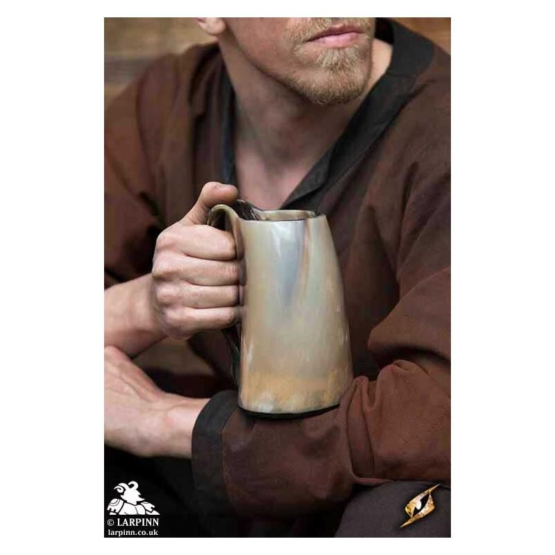 The Trader Mug is a drinking vessel designed to hold half a liter of your favourite drink. This mug is made of genuine horn and comes from the Indian water buffalo, chosen specifically for its dark colouring. The outside is polished to perfection and is smooth to the touch, while the inside of the mug is polished and treated for food consumption.