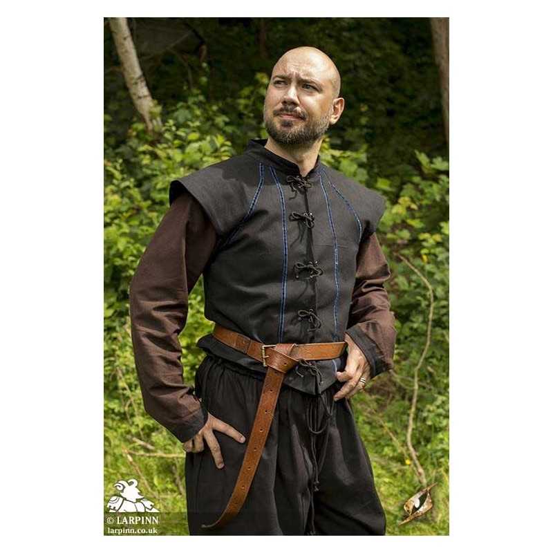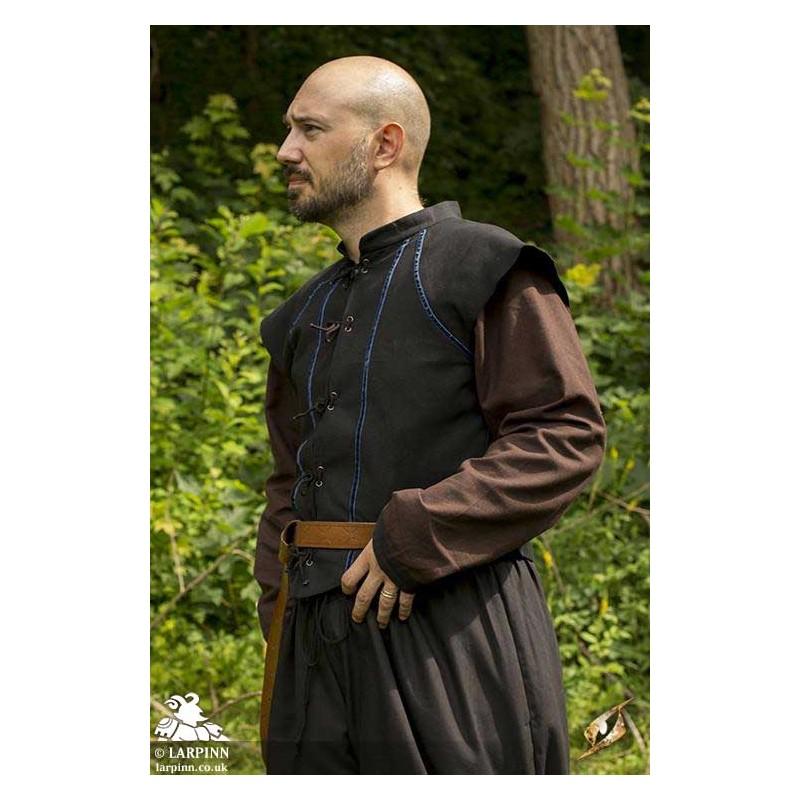 Epic Armoury’s Vest Tristan is a sleeveless shirt designed with bureaucrats or well-mannered townsfolk in mind. Reaching from the shoulders to the waist and made from soft, dyed cotton, this vest can be a costume all by itself--or work as a layer in a more complicated design. Designed to be form fitting and sleek, the vest features coloured trim meant to give you a slim and groomed appearance.