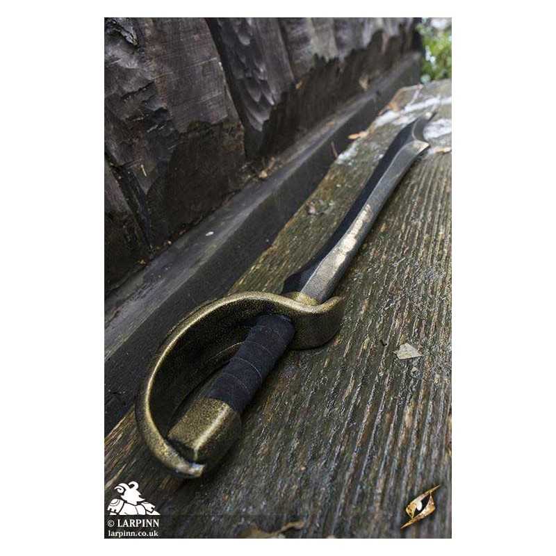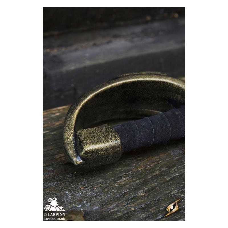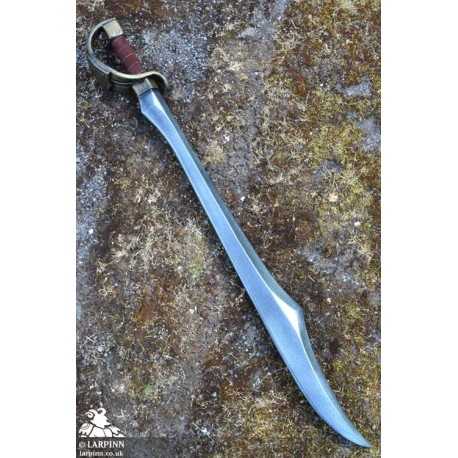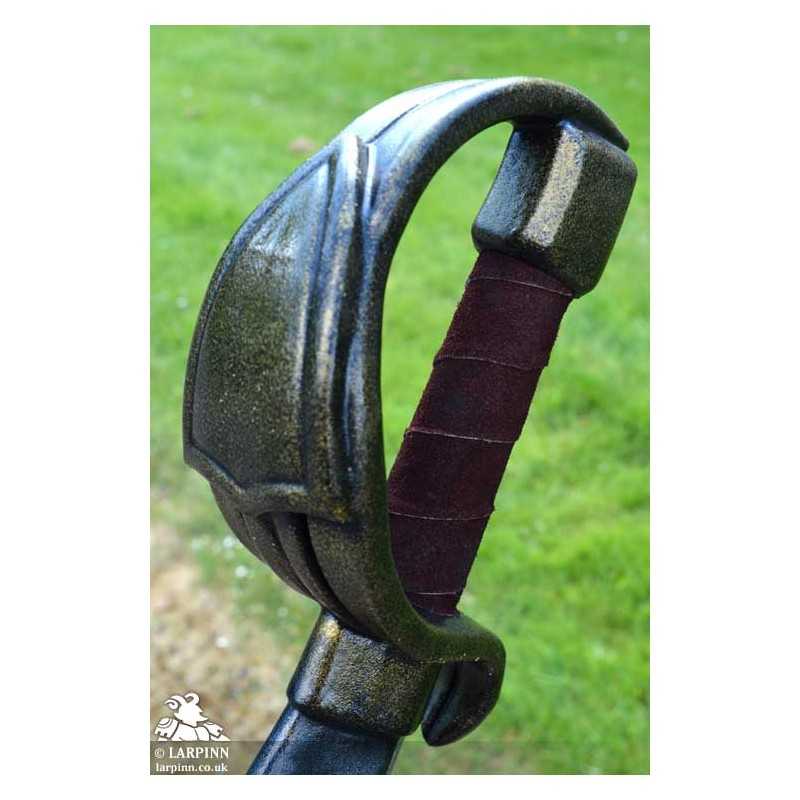 Epic Armoury’s Trollball Slayer is a sleek latex longsword designed for the confident adventurer. The Trollball Slayer is 110 cm long with a 90 cm curved blade that ends in a false edge, giving the blade more power when chopping and piercing through tough troll hide. The 10 cm split-leather wrapped handle is protected by a hand shield, which connects from the crossguard to the coreless pommel. The handle is ergonomic, giving you an intuitive feel in your hand for a better grip.