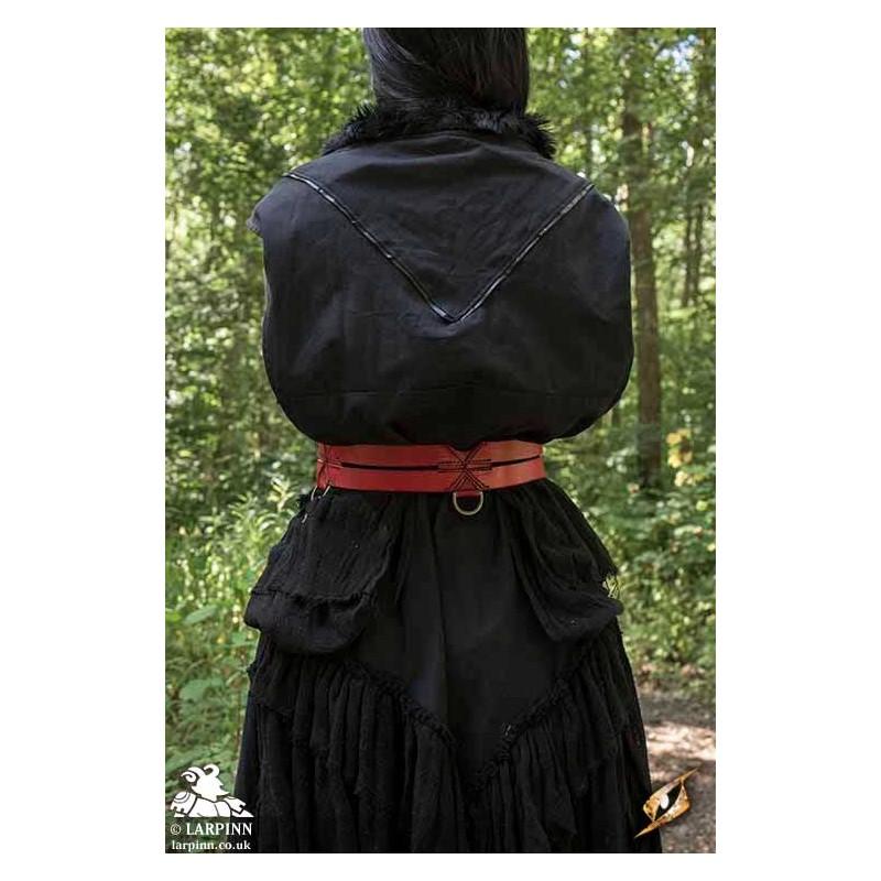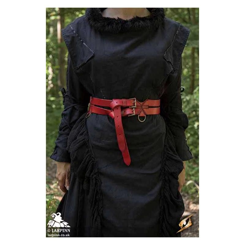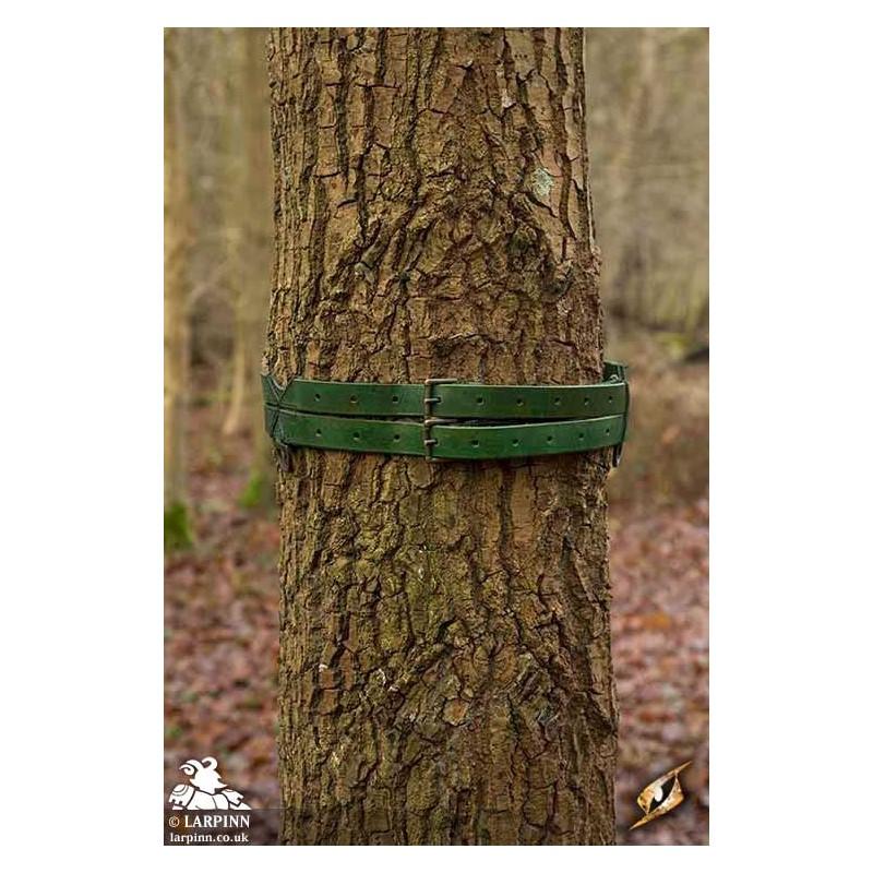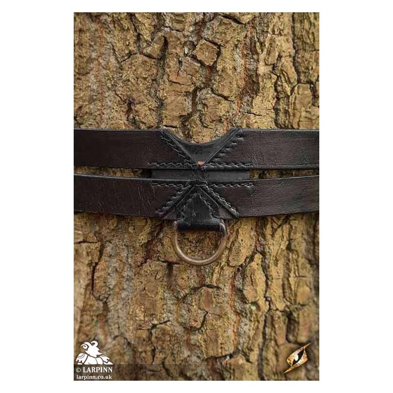 The two braces are fitted with brass D-rings for attaching or suspending bags and other equipment. Usable by a large variety of shapes and sizes due to its long 40 cm belt-tongues and nine punched holes, this belt is a perfect solution for anyone’s kit. With its simple style and rings, the belt is both functional and stylish, and can be used by lords or peasants--no matter race or culture.