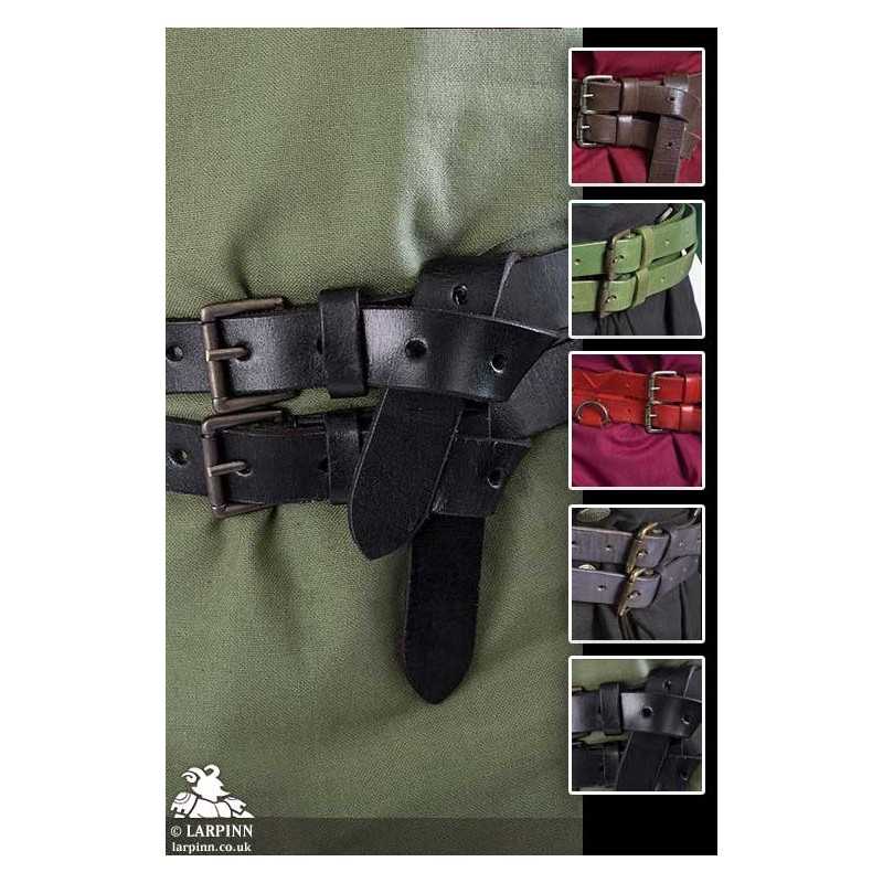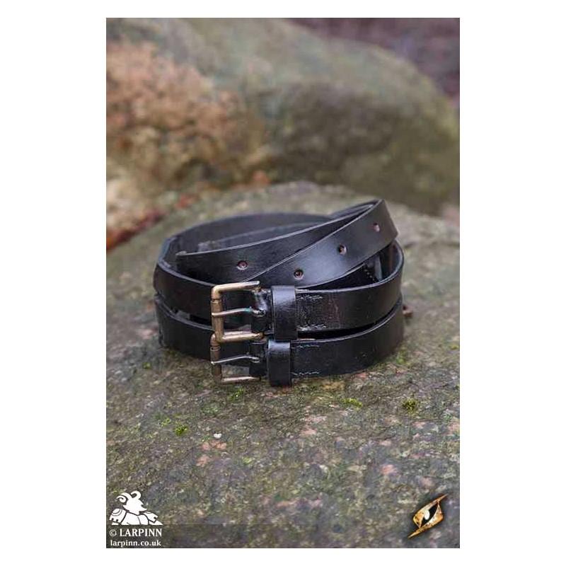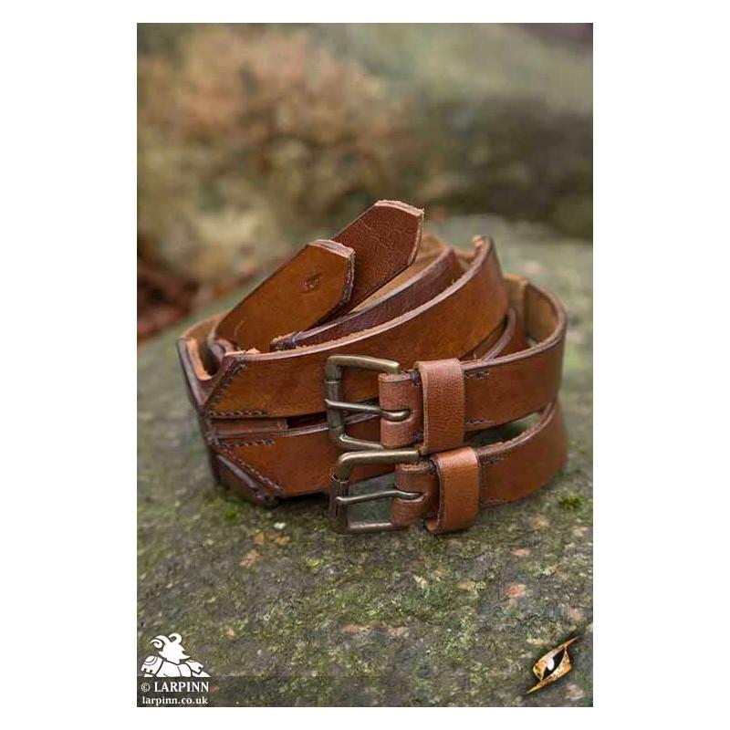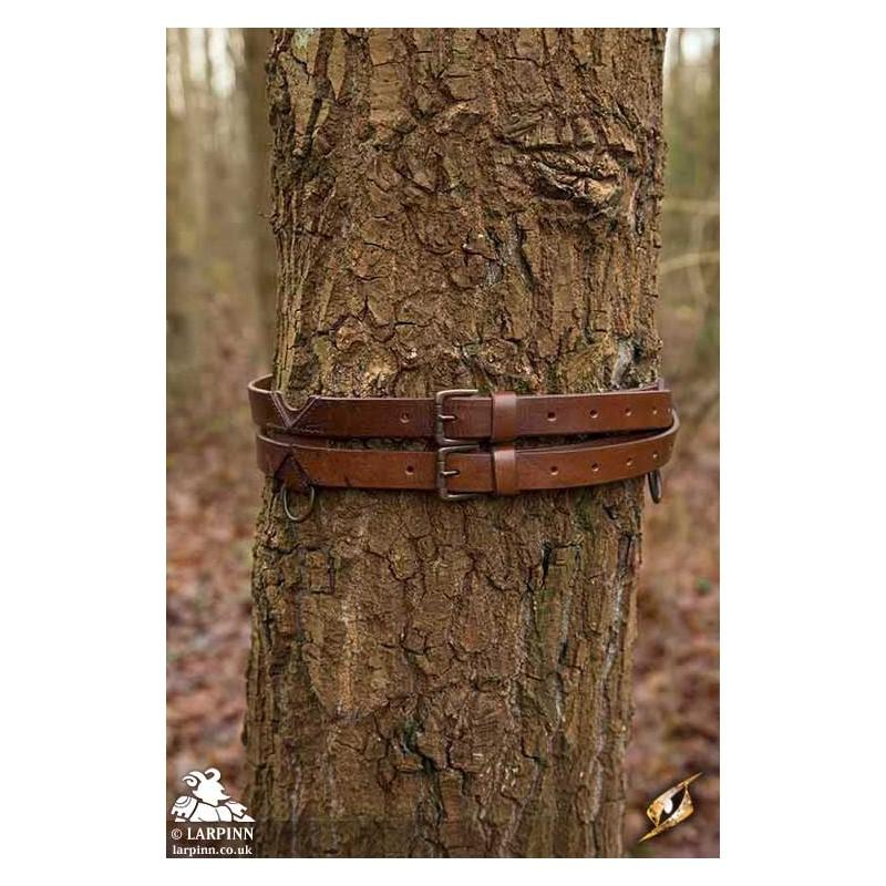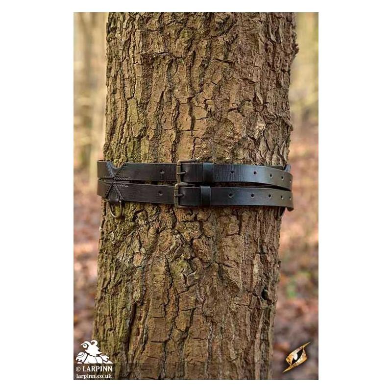 This bestselling Epic Armoury Twin Belt is a stylish and durable leather belt fashioned from two slimmer belts merged into one. Made from two buffalo-leather straps and stitched together by leather braces in an ornate pattern, this belt has a truly medieval look.