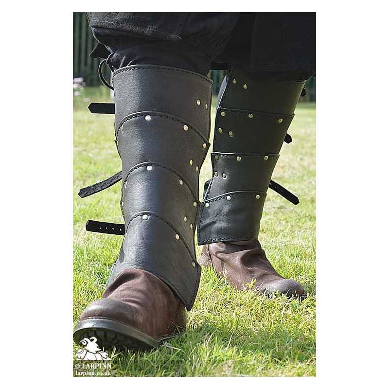 The Ulric Leather Greaves are constructed from thick dyed leather which are both sewn and riveted in places. Each segment is layered and the edges are covered with soft leather edging. The flexibilty of the Ulric Armour is great in combat making this a fantastic Larp item. However, the style is great for a number of medieval and fantasy, cosplay and theatre costumes.
