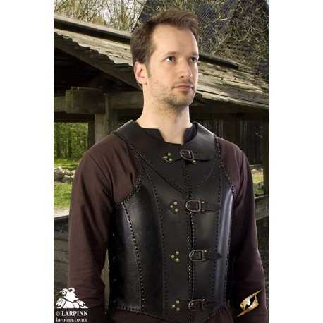 This bestselling Epic Armoury Veteran Armour is a typical western cuirass designed to protect the whole torso. The cuirass secures tight over the breast and abdomen using four sturdy leather straps--each riveted with decorative brass studs--and brass buckles. It is highly adjustable both at the front, but also with strong leather cords at the flanks.