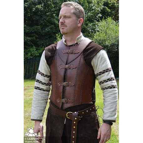 This bestselling Epic Armoury Veteran Armour is a typical western cuirass designed to protect the whole torso. The cuirass secures tight over the breast and abdomen using four sturdy leather straps--each riveted with decorative brass studs--and brass buckles. It is highly adjustable both at the front, but also with strong leather cords at the flanks.
