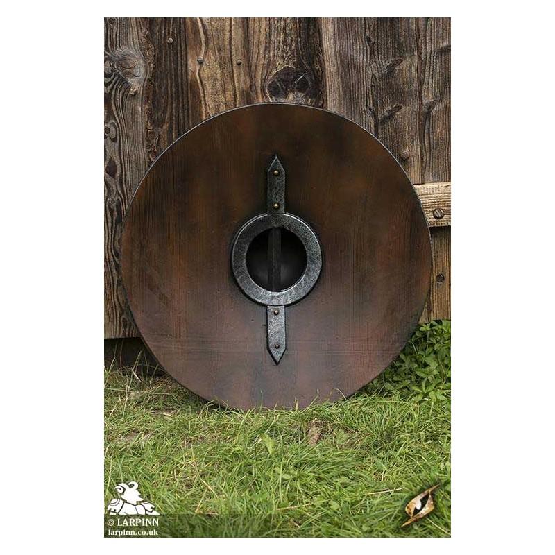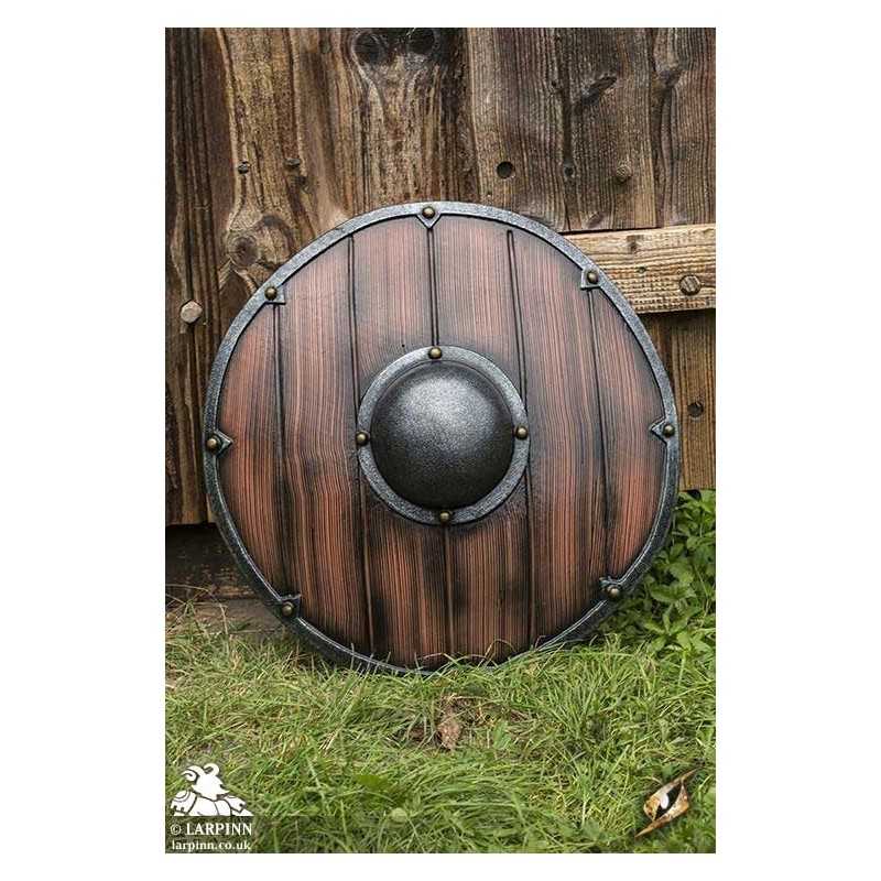 The bestselling Epic Armoury Viking Shield is a round 50 cm latex shield inspired by early pre-10th century vikings and Saxons. With a wooden texture and wood and iron paint finish, this shield is sure to impress your fellow warriors on the battlefield paired with a Viking Axe. Its slight convex shape and iron boss on the front is sure to give you an edge in combat.