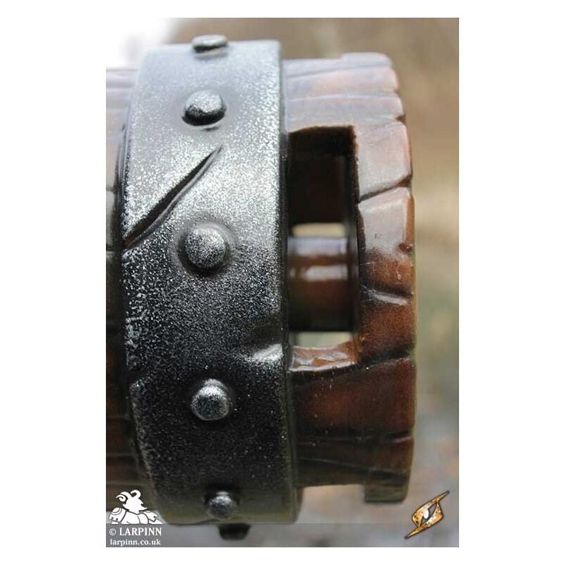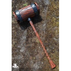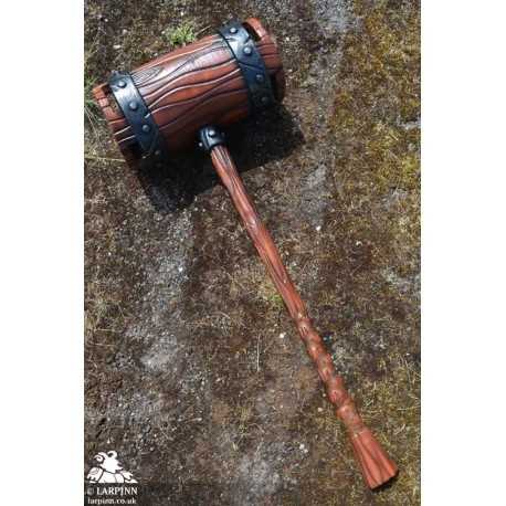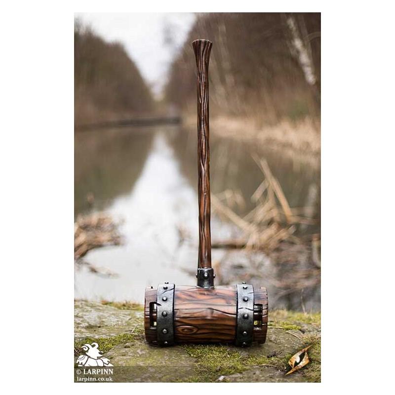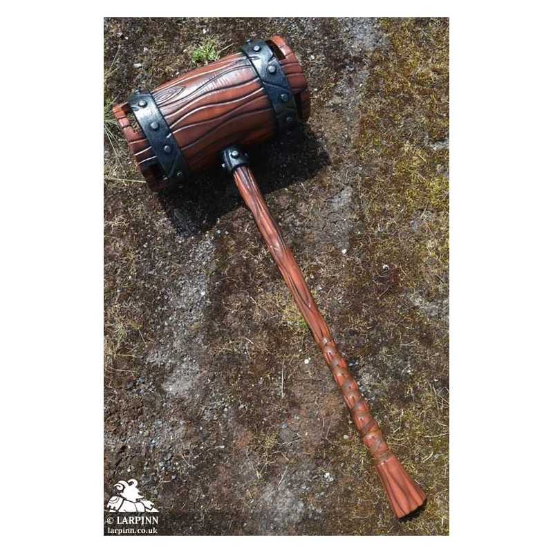 Epic Armoury’s War Mallet is a 101 cm latex warhammer uniquely designed to be safer and easier to wield in combat. The War Mallet’s head is symmetrical, reaching 20 cm from the haft with two 20 cm diameter faces designed to deliver a fatal blow to your enemies. The head is hollow, making it safer to use and more lightweight than a foam alternative. Sculpted and handpainted to look like a heavy wood mallet, the head is attached to a dark wood-coloured haft 75 cm long.