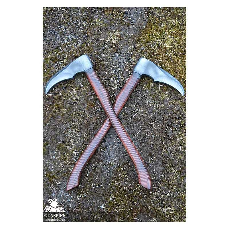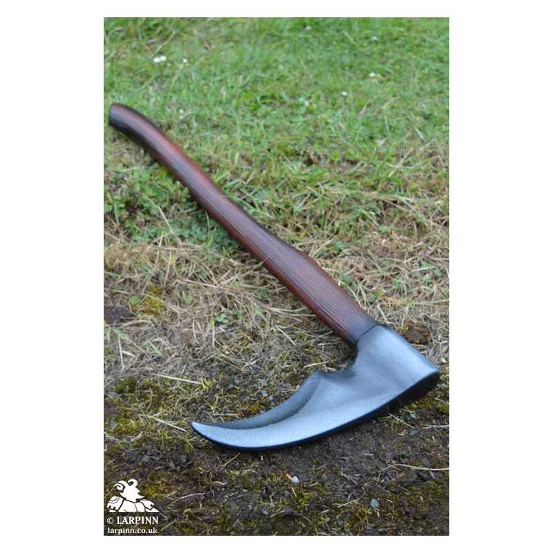 Epic Armoury’s War Scythe is a 60 cm latex short axe with a 20 cm blade. The weapon is entirely handpainted with wood-grain and metal finishes. The blade is angled and designed to match the realism of the traditionally shaped handle, with a deadly hook at the end inspired by the weapons that could rip through armour...as well as more obvious farmer’s tool!