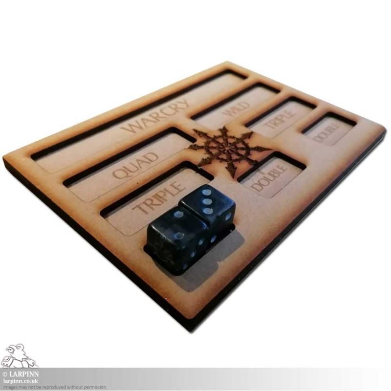 These markers have recesses designed for D6. Each recess is encraved with "Double", Triple, "Quad" and "Wild" as appropriate.