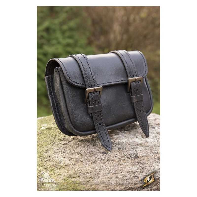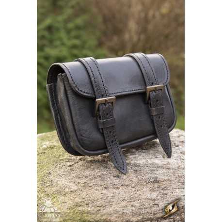 The Warrior Bag is a large leather box-bag intended to hang from a belt. The bag can be closed with two sturdy leather straps secured by brass buckles. The bag is fitted with long leather straps under the lid to keep its content securely inside during combat.