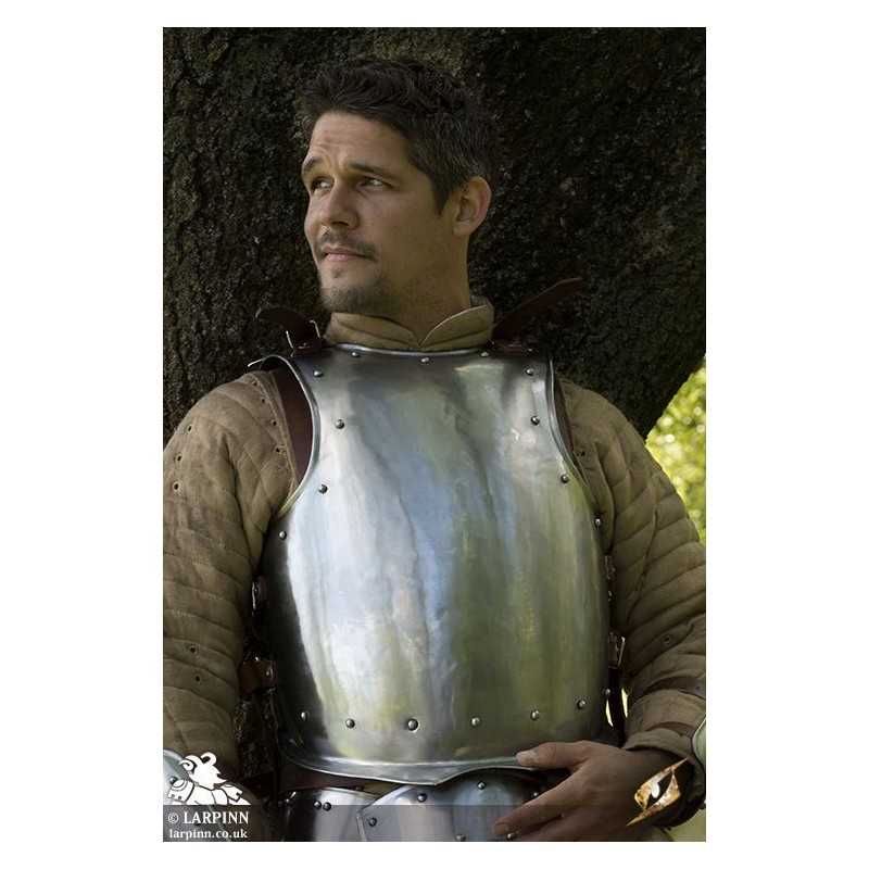 Epic Armoury’s Warrior Breastplate is a simple low-fantasy piece of armour protecting the front of the torso and abdomen. The plate rests at the hips and has a V-shaped flange--or sword turner--that deflects blows from the weak spot where torso and leg armour fit together. Sculpted to fit the body and add structural strength to the steel, this steel riveted piece has been polished to a high-gloss finish to appeal to the elven and human knights in shining armour.