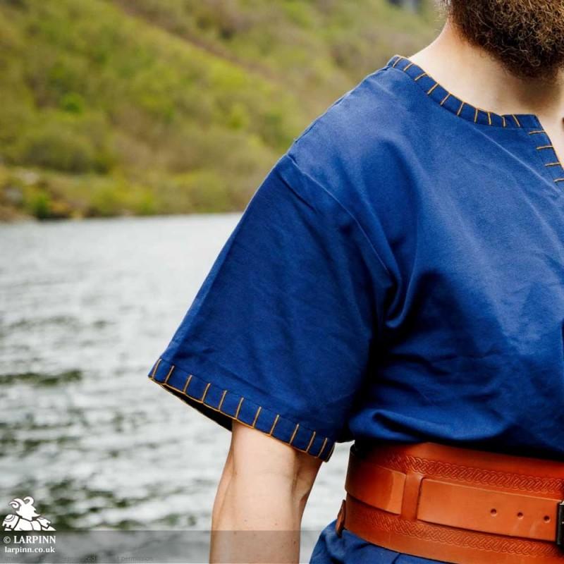 The Wulfric Medieval Tunic - Short Sleeve is ideal kit for warmer weather or building up base levels of LARP costume. Made from 100% cotton, this tunic is breathable and realistic with just a simple blanket-stitch edging along the neckline.